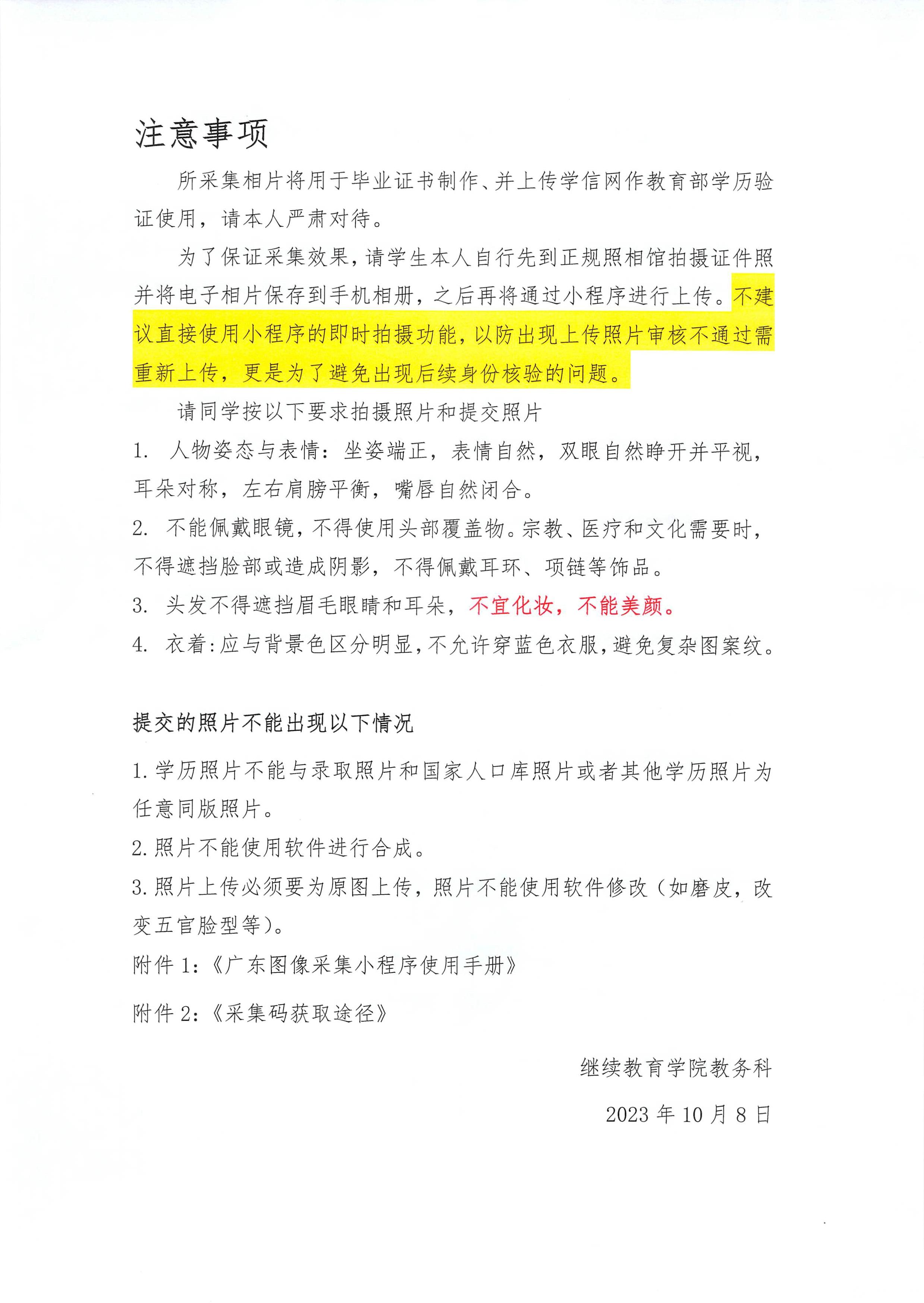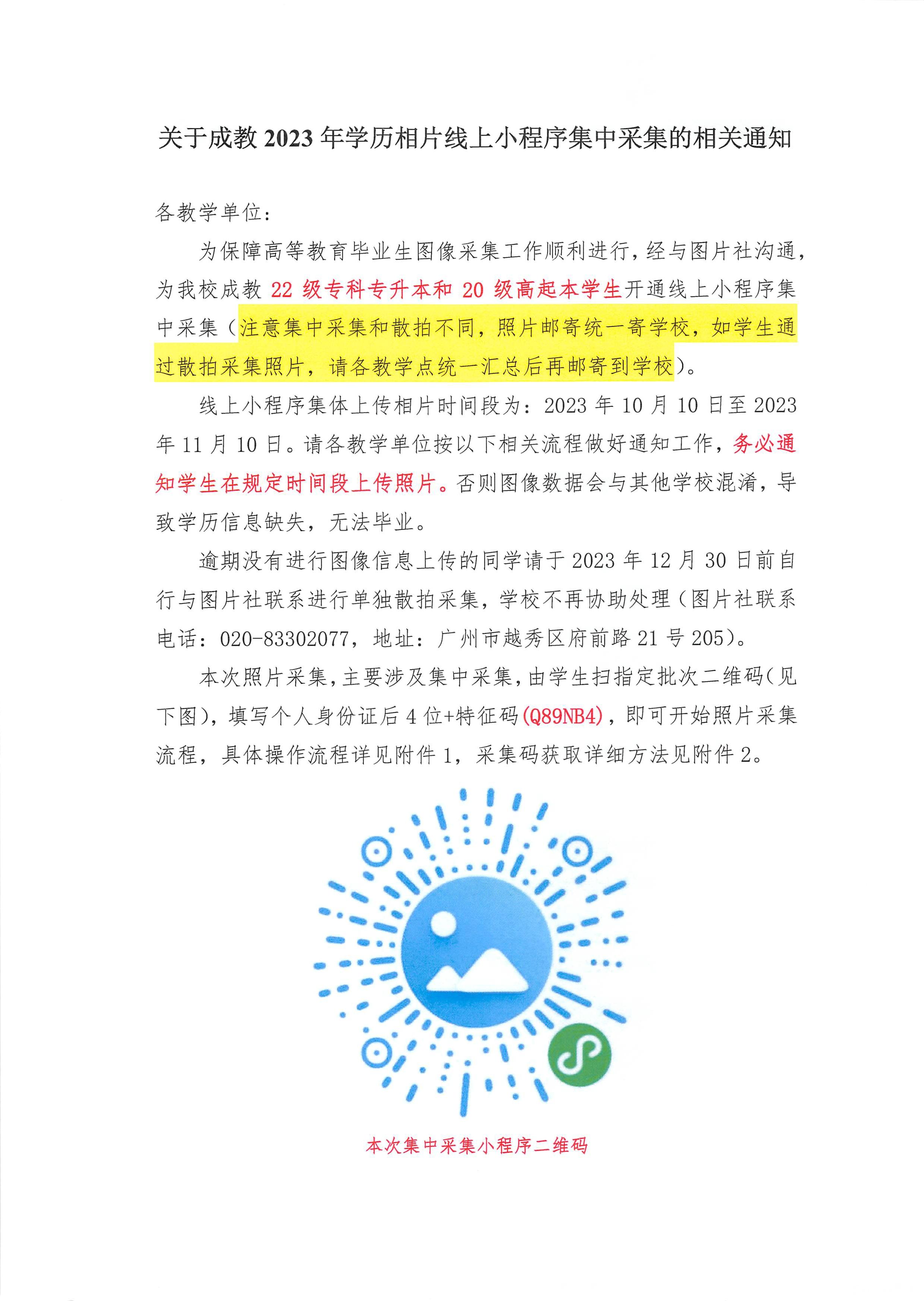 关于成教2023年学历相片线上小程序集中采集的相关通知