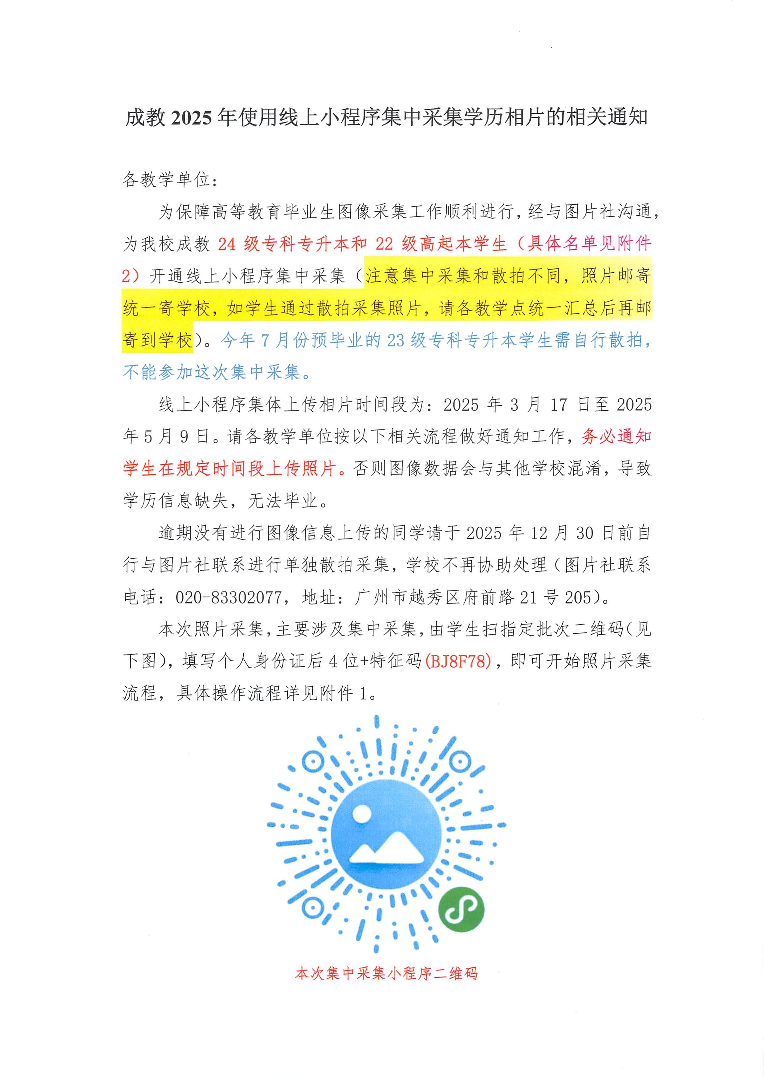 成教2025年使用线上小程序集中采集学历相片的相关通知