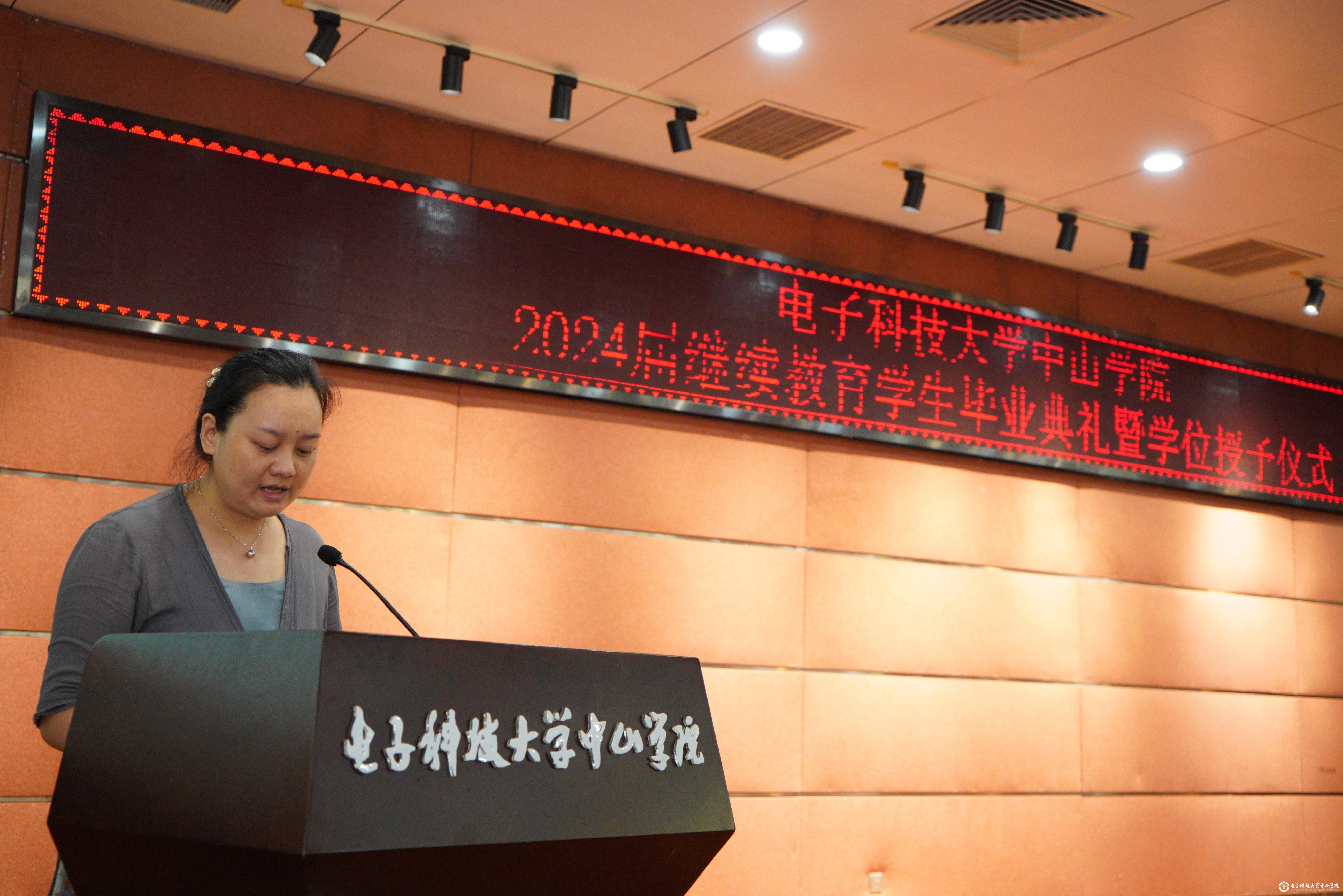 6月30日,sunbet申博,申博官网,sunbet官网2024届继续教育学生毕业典礼暨学位授予仪式在莲峰讲堂隆重举行。sunbet申博,申博官网,sunbet官网院长徐建华、继续教育学院院长李牧、广州达德自学考试辅导中心校长蔡伟、深圳市上才商务培训中心校长刘海峰、珠海市外经贸专修学校校长龚艳、广东北达教育培训中心校长蒋刚苏、sunbet申博广东电子信息工程研究院副院长孙文,各教学点师生代表及家长600多人参加。本次典礼由继续教育学院副院长黄智洪主持。