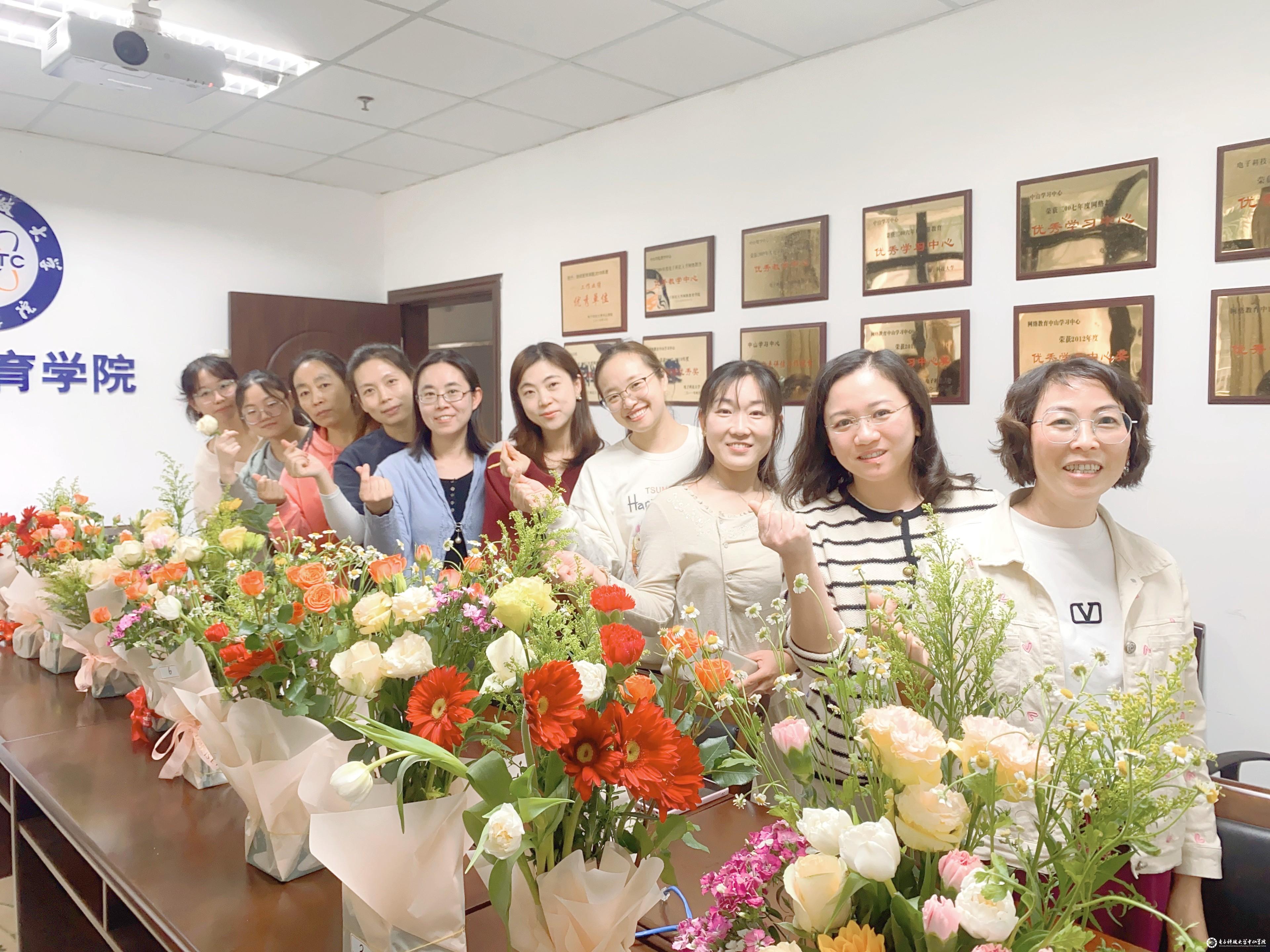 女教职工根据不同的花材、颜色、形状进行搭配剪裁,将花错落有致地插在一起,在轻松愉快的氛围中,大家先后完成了各自心仪的作品。在体验插花乐趣的同时,感受到了插花艺术的魅力。男教职工担任评委,通过投票评选出前三名,并向女同志们送上节日祝福!