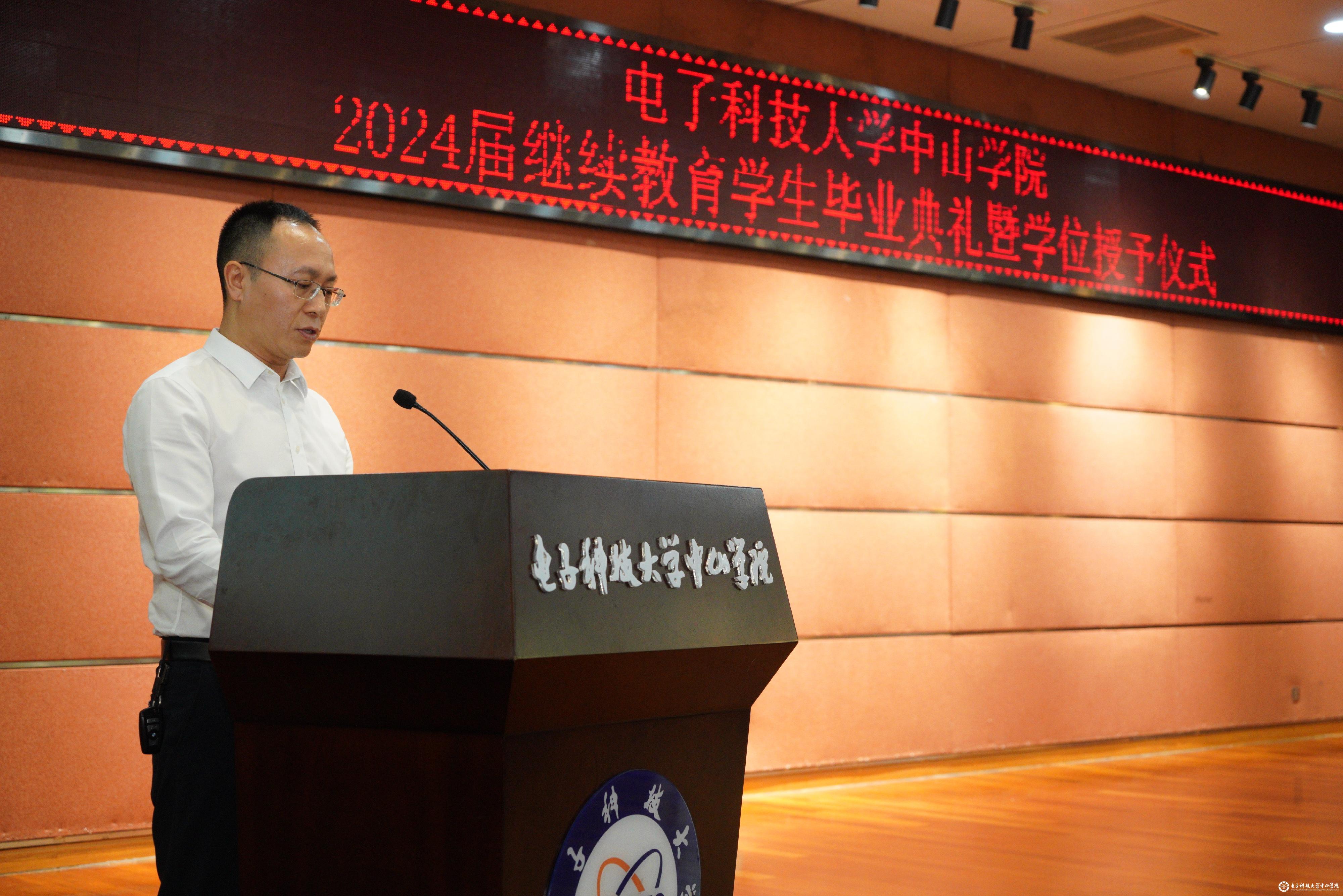 6月30日,sunbet申博,申博官网,sunbet官网2024届继续教育学生毕业典礼暨学位授予仪式在莲峰讲堂隆重举行。sunbet申博,申博官网,sunbet官网院长徐建华、继续教育学院院长李牧、广州达德自学考试辅导中心校长蔡伟、深圳市上才商务培训中心校长刘海峰、珠海市外经贸专修学校校长龚艳、广东北达教育培训中心校长蒋刚苏、sunbet申博广东电子信息工程研究院副院长孙文,各教学点师生代表及家长600多人参加。本次典礼由继续教育学院副院长黄智洪主持。