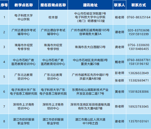 注:各教学点具体开设的层次、专业和学习形式以学校当年招生授权为准。